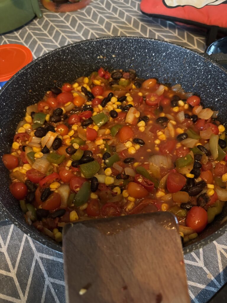 - 1 blik (400 g) zwarte bonen, afgespoeld en uitgelekt