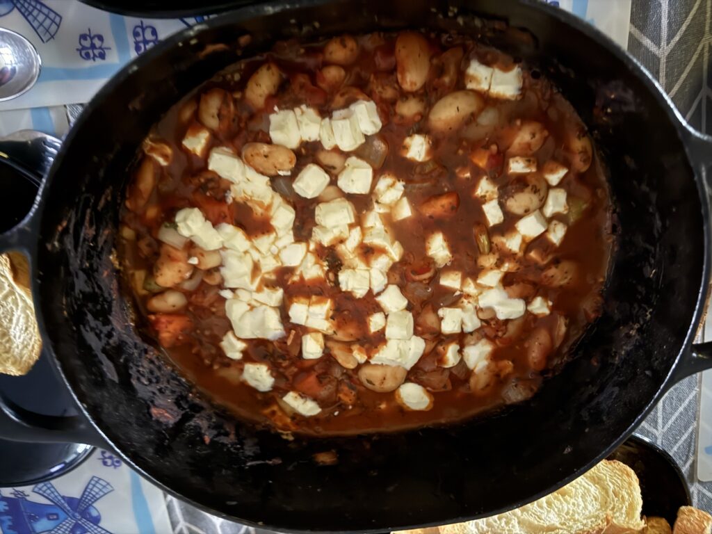 Gigantes Pilaki is een heerlijk comfortgerecht uit de Griekse keuken. Grote boterbonen worden gebakken in een rijke tomatensaus met een flinke scheut olijfolie – want je kunt nooit te veel olijfolie hebben, toch? Ze worden gemengd met wortel, bleekselderij en veel verse kruiden, afgetopt met feta en in de oven gebakken voor een knapperig laagje!