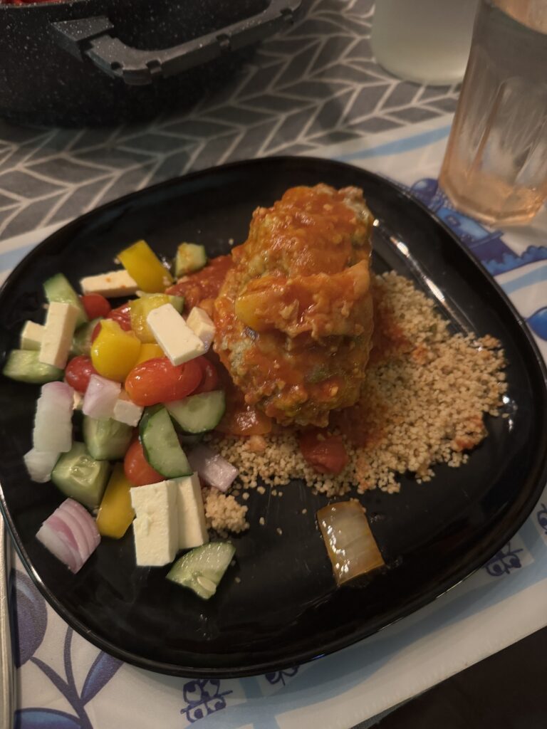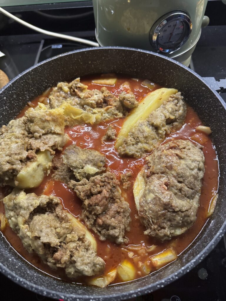 Zin in een heerlijk, hartverwarmend gerecht dat perfect is voor een gezellige maaltijd? Deze gevulde aardappelen met vegan gehakt, gestoofd in een smaakvolle tomatensaus, zijn een geweldige combinatie van knapperige aardappel, gekruid vlees en rijke saus. Serveer het op een bedje van couscous en geniet van een authentiek comfort food-gerecht!