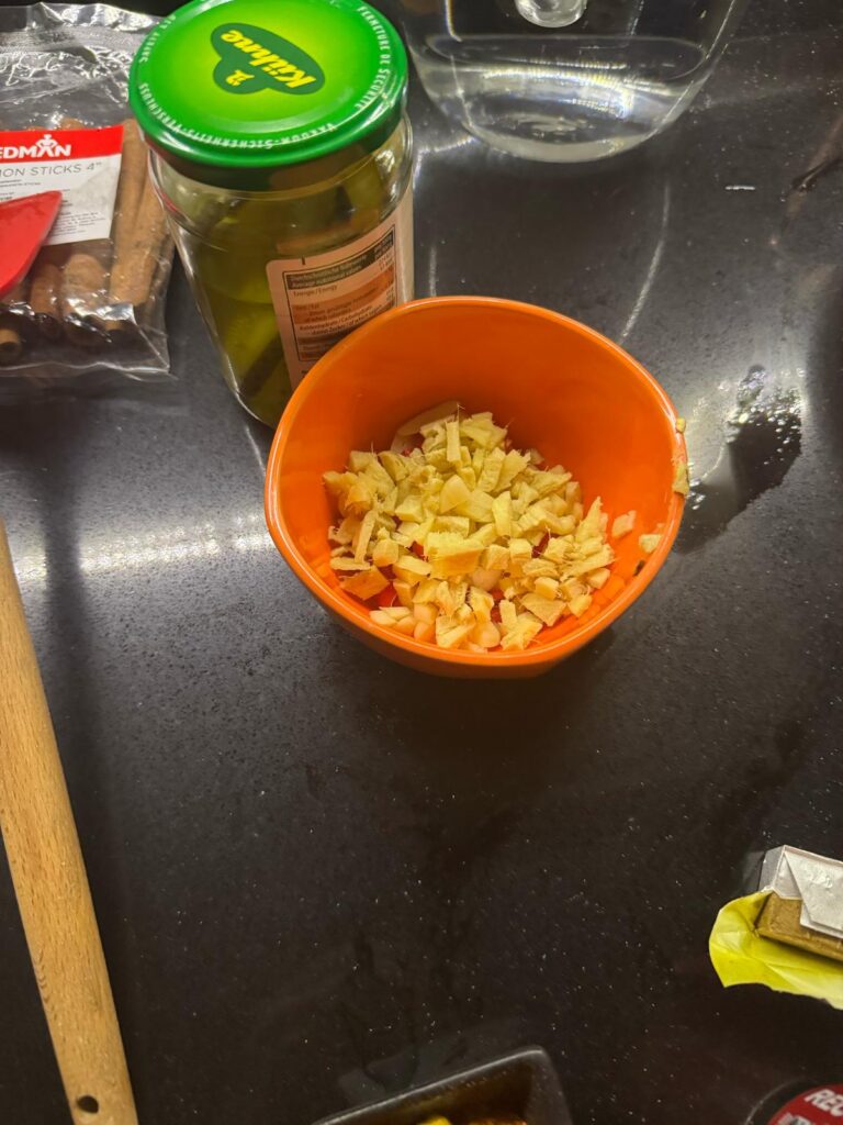 - Hak de groenten, knoflook, gember en jalapeño fijn.