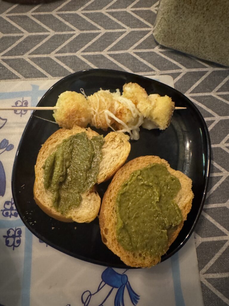 • Rijg de mozzarella-balletjes aan spiesjes en leg ze over de soepkommen.