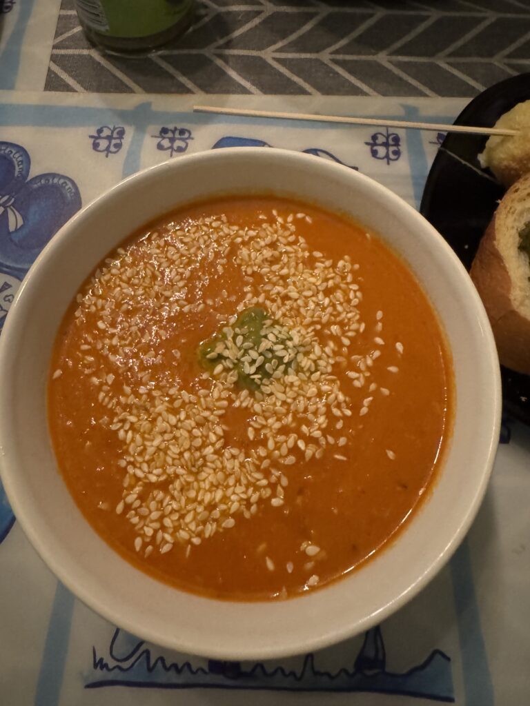 Geniet van deze heerlijke combinatie van romige tomatensoep en knapperige mozzarella-balletjes! Een perfect gerecht voor een gezellige avond. 🍅🧀
