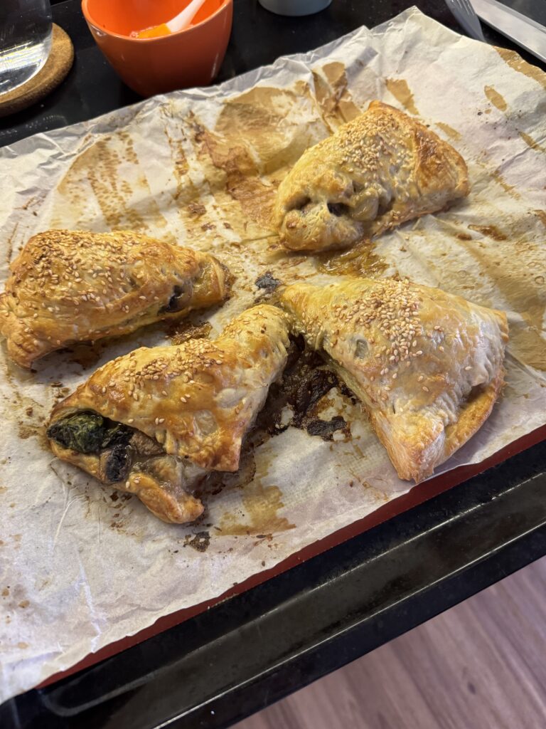 In Israël zijn boreka’s een vast onderdeel van het ontbijt. Je kunt ze in elke kruidenierszaak of supermarkt kopen, maar eigenlijk is het niet moeilijk om ze zelf te maken. Natuurlijk kun je deze boreka’s ook als lunch eten. Pas op, als ze net uit de oven komen is de vulling gloedheet en ik verbrande mijn lip.